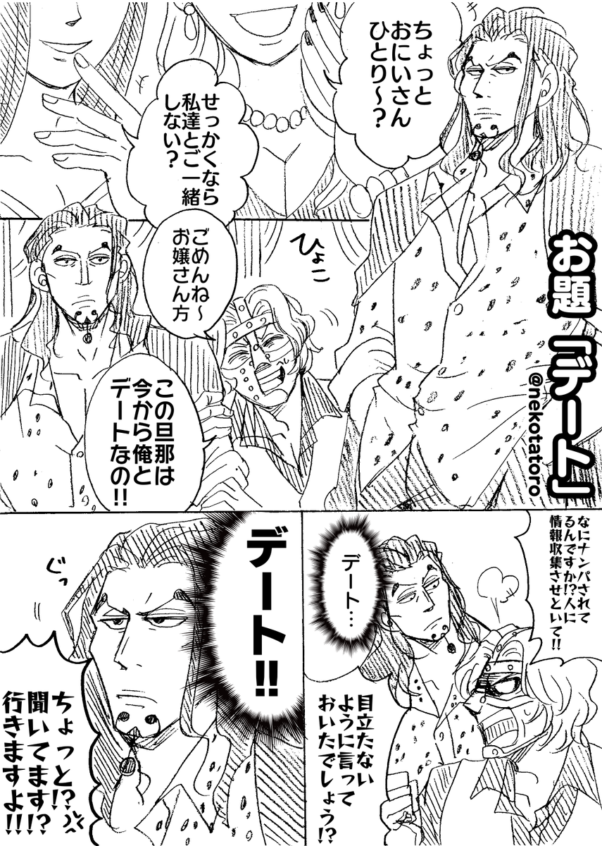ルチスパワンドロ開催おめでとうございます🐆🐼💕 【デート】 1324初デートの記憶 🐆「フッ…暴れるお前を運ぶのは一苦労だったな」 🐼「(え…?デート…?荷物持ちで連れてったつもりだったんだが……?)」 #ルチスパ版ワンドロワンライ