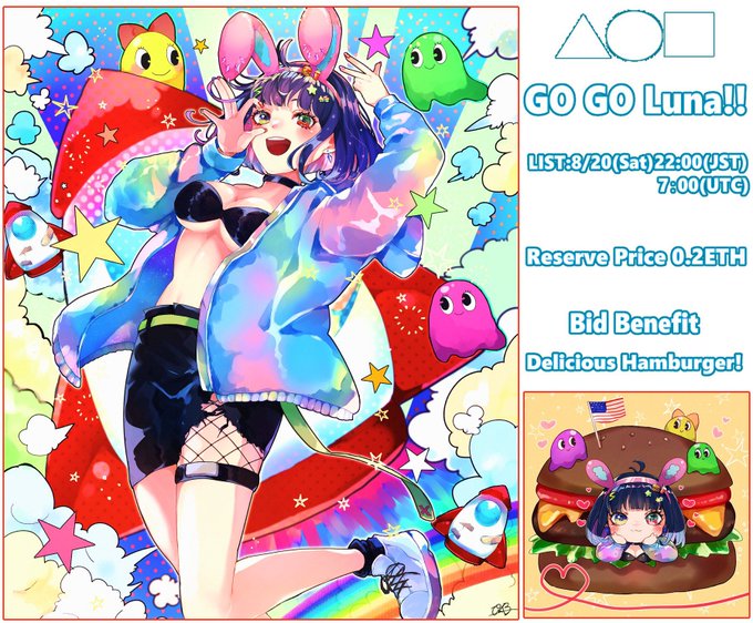 ▲●■ 『Moon girl LUNA』 2022.09.04(sun.) 🕘21:00(jst) ▶︎START 0.2 ETH〜 * Benefits for all bidders * The winner's prize is a PFP collection. (ETH Chain) This is fan art of Arino Sakura's work. (@NFT0226 )I painted this with love for her. #ルナ絵日記 #Foundation #NFT