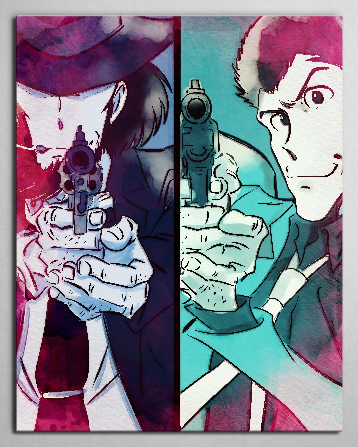 ルパン三世😎 模写です 途中楽しくなっちゃって絵の具飛ばしまくってたらただの事故現場 多分ルパン頭ぶつけてる。 かっこよくしたかっただけ🤗 #ルパン三世part6 #アクリル絵の具 #模写 #絵描きさんと繋がりたい