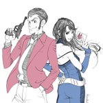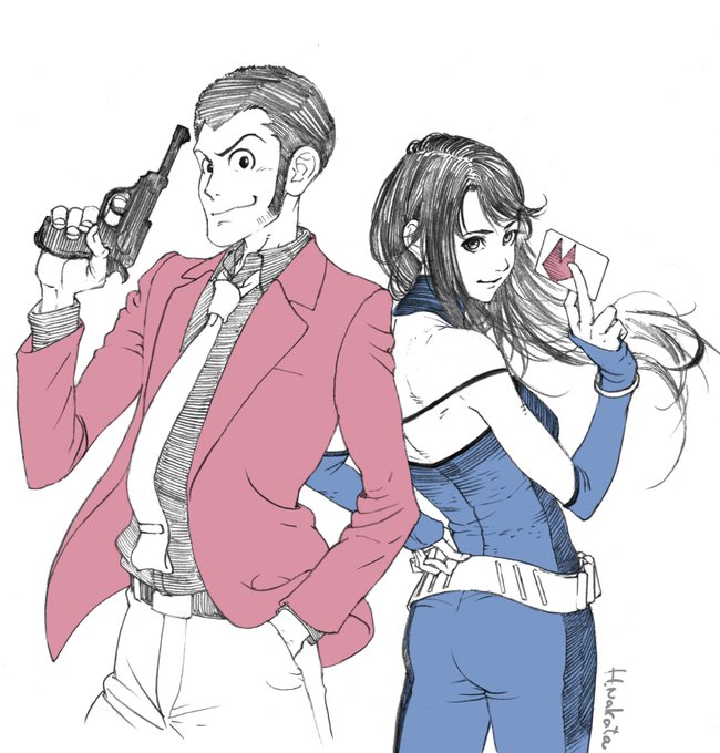 #ルパンVSキャッツ #ルパン三世 #イラスト 五右衛門の行きたいところに付き合ってくれる次元ちゃんは本当に尊い ルパキャッツのコラボカフェに本人達が行ったら大騒ぎどころじゃないけど笑笑 ルvsキャの次と五のスタイル結構好き🥰 (次のベスト、五の胸元よ?!!、、、