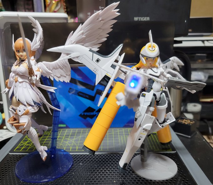 #今月作ったプラモ晒そうぜ 今月はこちらの2体✨ 【碧眼の女騎士】【赤眼の堕天使】 ガラスで変身シーンを表現しました。 そろそろメカものが恋しくなってきました… #ユリゴッドバスター #ルミティア