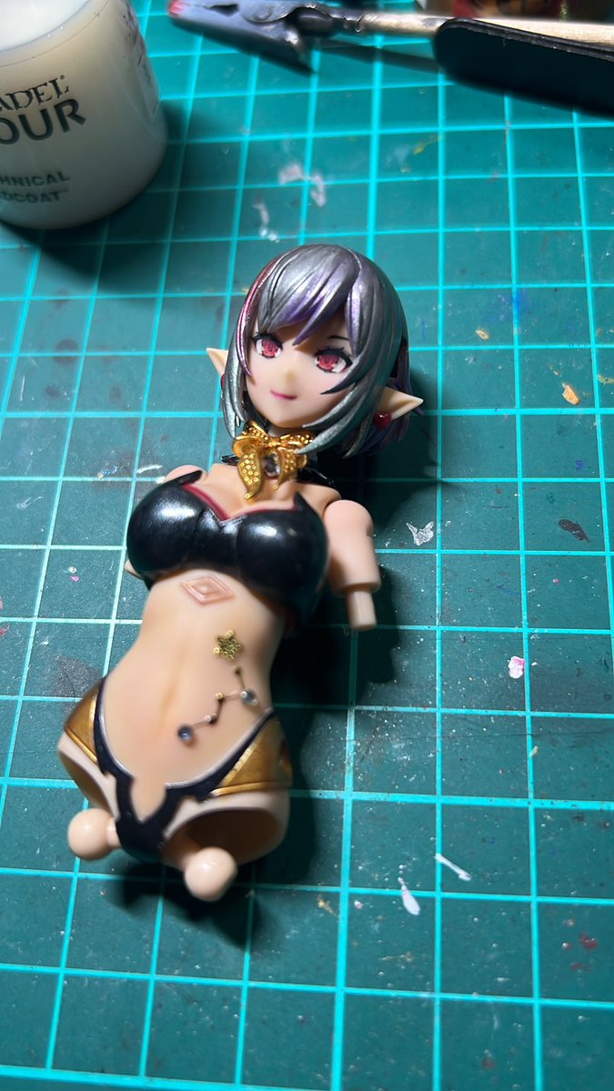 #ルミティア 一旦完成 ブンドドして塗装ハゲ多数 スカートや羽など手直しとトップコートは必須ですな ガンプラとは違う作る楽しさが有りました 黒でも可愛いぞ! #アルカナディア #Arcadiart