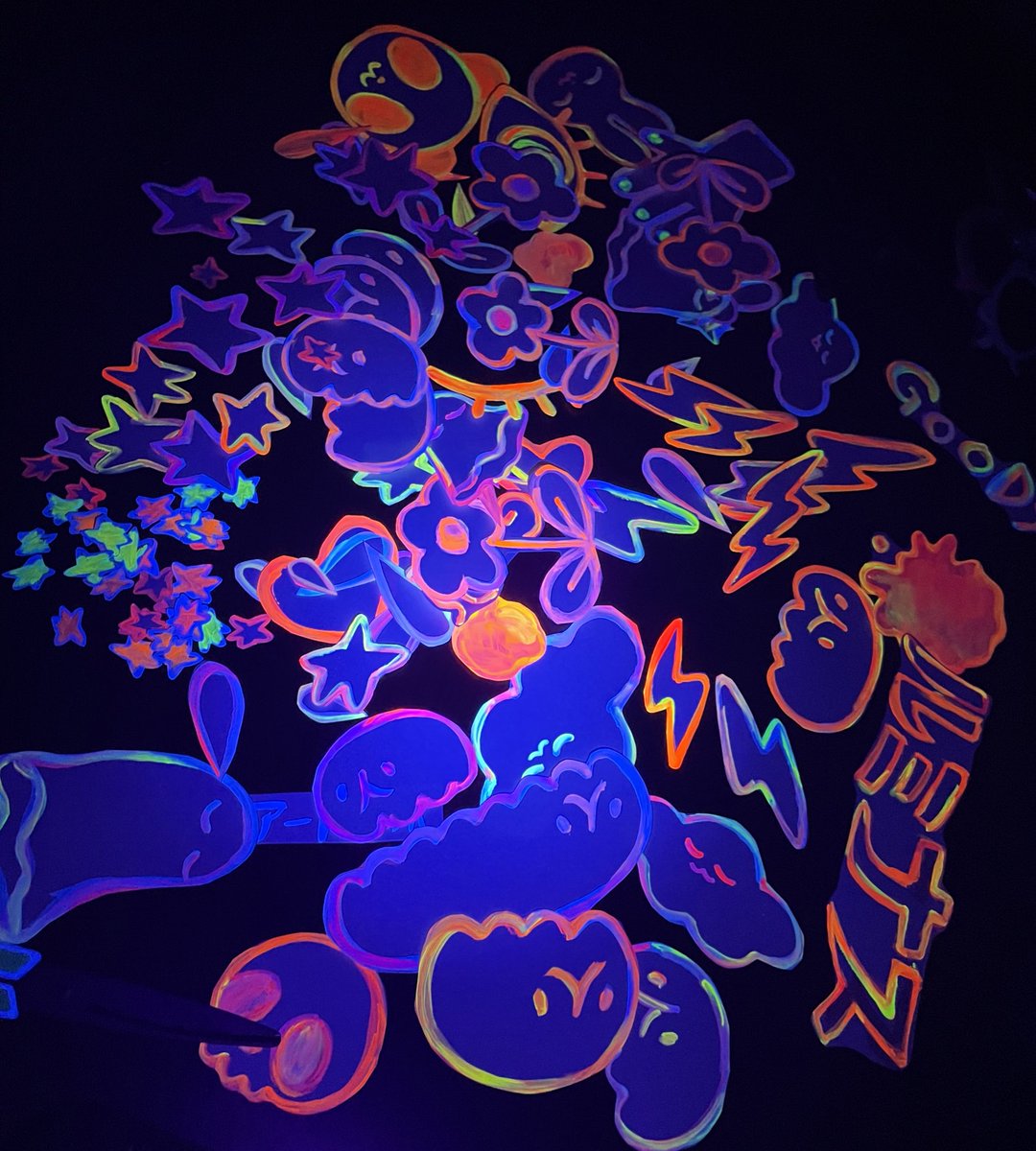 こちら会場にペタペタする予定のやつです ルミナスアートラボ ブラックライトで作品を光らせてみたい20人による、実験的なグループ展💡 会期 8月9日(水)~14日(月) 12時~20時 ※初日は15時開場、最終日は18時まで 場所 イロリムラ プチホール @irorimura2005 #ルミナスアートラボ