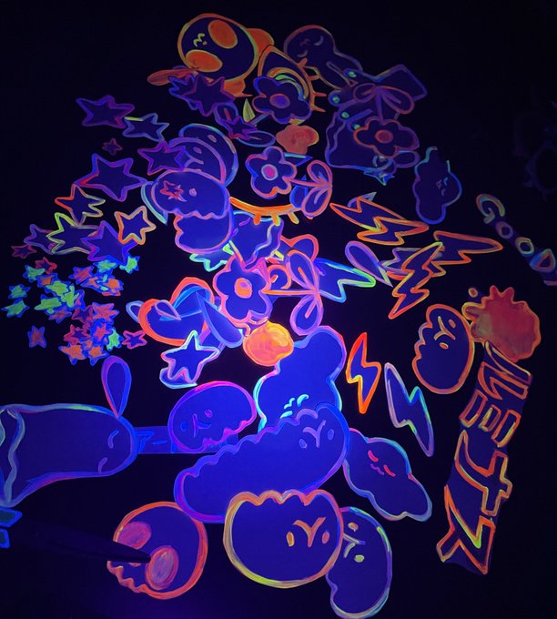 \明日8月9日15時より開催/ ブラックライトで作品を光らせる展示会【#ルミナスアートラボ】 詳細はこちら→@luminous_artlab 今回は新作2点、旧作1点を展示いたします💀🙌 いつもとちょっと雰囲気を変えて描いてみました!是非見に来ていただけるとうれしいです〜🧪✨光るグッズも持っていきます✨ twitter.com/luminous_artla…