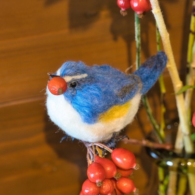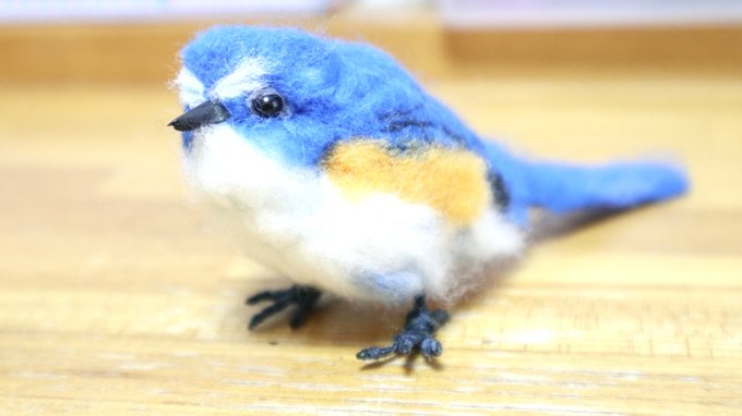秋めいた空気だったり、まだまだ暑かったり…季節の変わり目には皆さん体調気を付けてくださいね(*´˘`*)♡ 私はせっせとハロウィン用の作品を試行錯誤中です🎃 #ハンドメイド好きさんと繋がりたい #羊毛フェルト #ルリビタキ