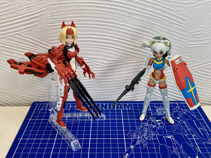 赤い機体⁉️シャアか⁉️ いいえ、新しい仲間のアルカ=カルティー(画像左)です^_^(右は機動戦士ルルチェム) 見せてもらおうか!新しい30MSの性能とやらを^_^ #30MS #30MSの波に乗れ #ガンプラ好きな人と繋がりたい #アルカカルティー #ルルチェ