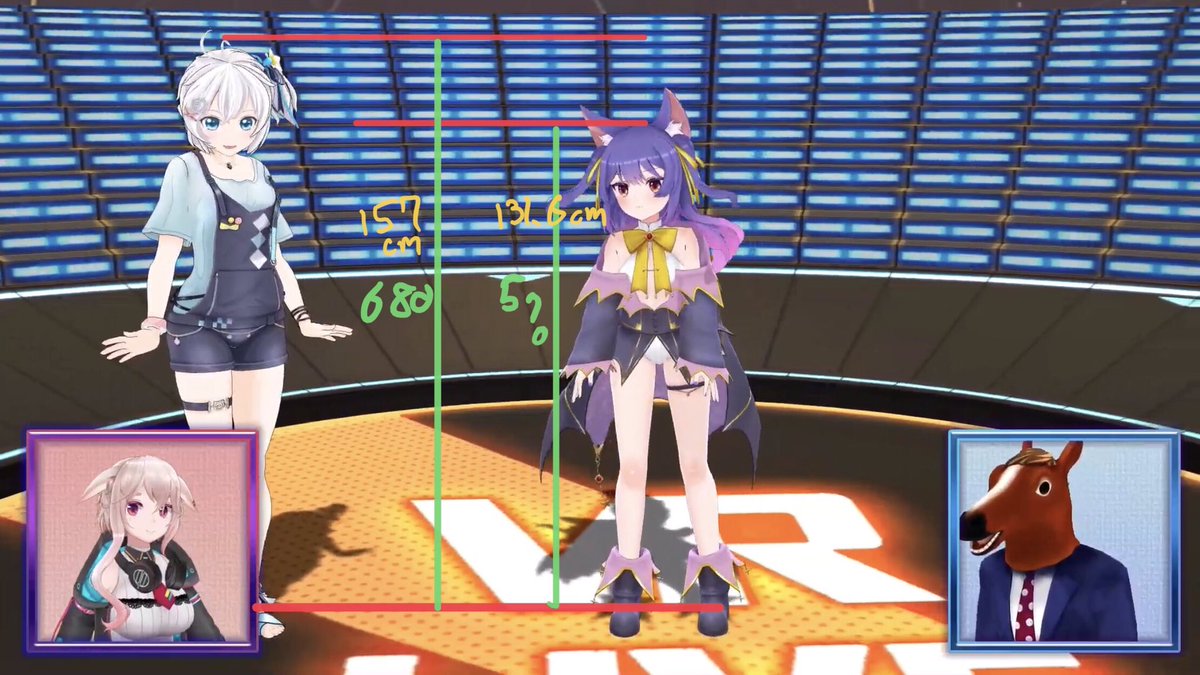 ルルンちゃんの身長検証 シロちゃんの身長をいろんな方と比べて157cmと仮定した場合、大まかに身長の比を取って算出したルルンちゃんの身長は約131.6cm これは女性8~9歳の平均身長に一致する。 超ロリだぜ! #ルルンルルリカ3Dお披露目