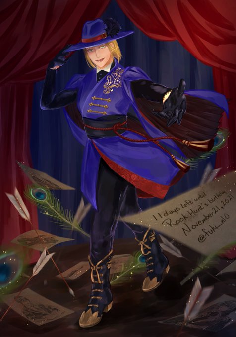 🏹誕カウントダウン企画 お誕生日まであと11日、お題「帽子」 おしゃべり3話の羽帽子を被る理由のイメージで描きました。何かを演じているようでいて、いつだって自分に正直なルークハントが好きです #ルーク誕生祭カウントダウン2021 #ツイステファンアート #twstファンアート