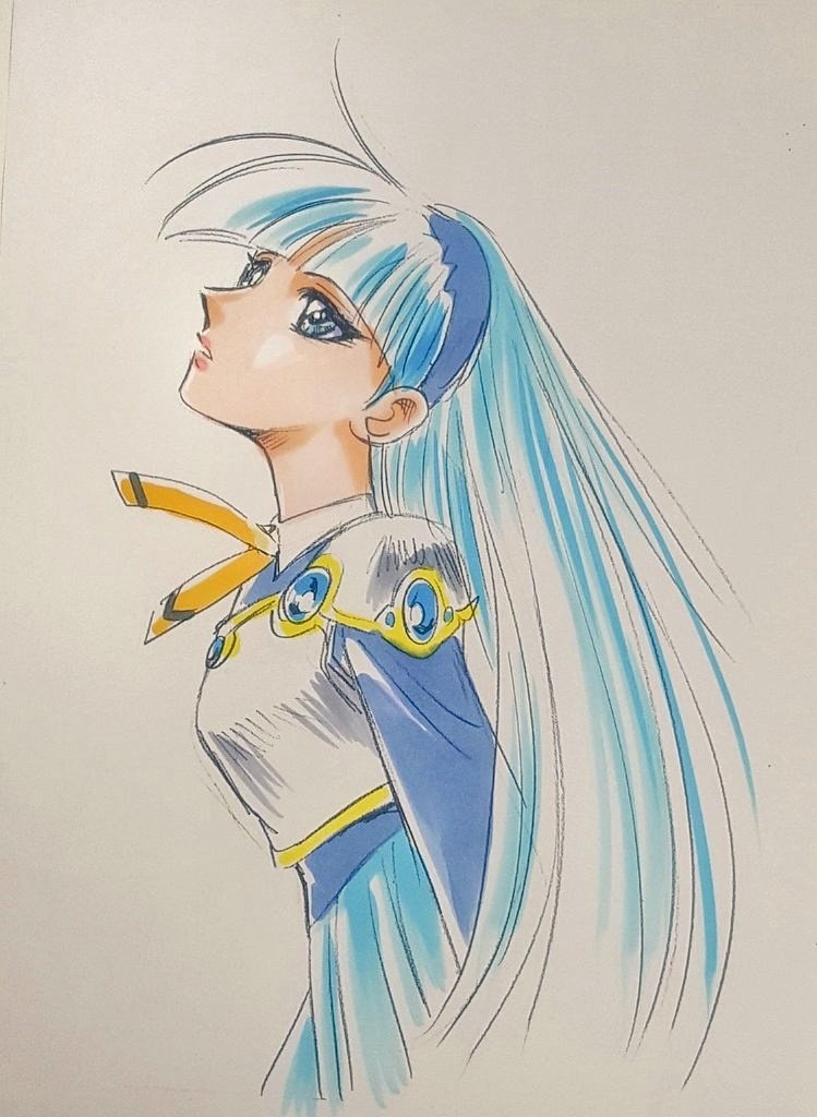 オハヨマス💙 私CCさくら大好きでCLAMP作品を知ったんですが…ずっと「レイヤーズ」だと思ってました😇「レイアース」だと知り、だから女の子が光と海と風なのかと合点が…🥹 思い出したので好きだった海ちゃんを✍️ #レイアース #キャラ模写 #illustration