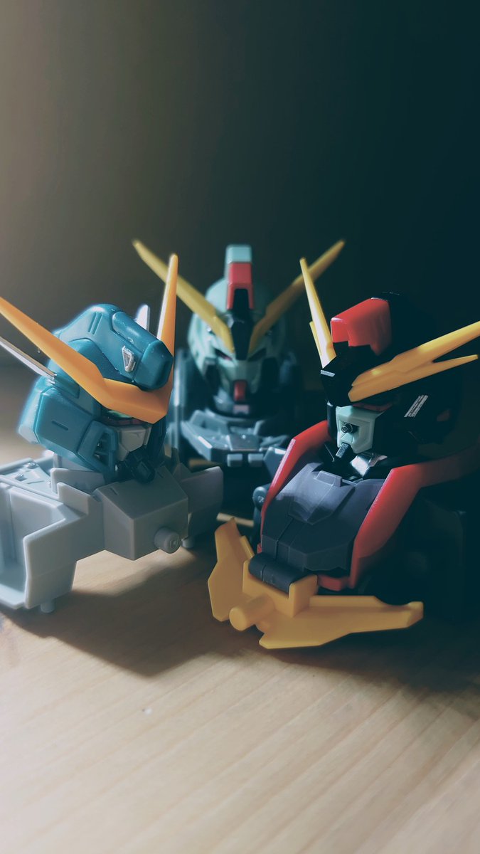 『FULL MECHANICS レイダーガンダム』組み上げ完了。 やっと3体が揃いました。嬉しいけど置き場にすげぇ困る😂 #ガンプラ #ガンプラの画像を貼るとRTされると聞いて #ガンプラ好きな人と繋がりたい #レイダーガンダム #機動戦士ガンダムSEED