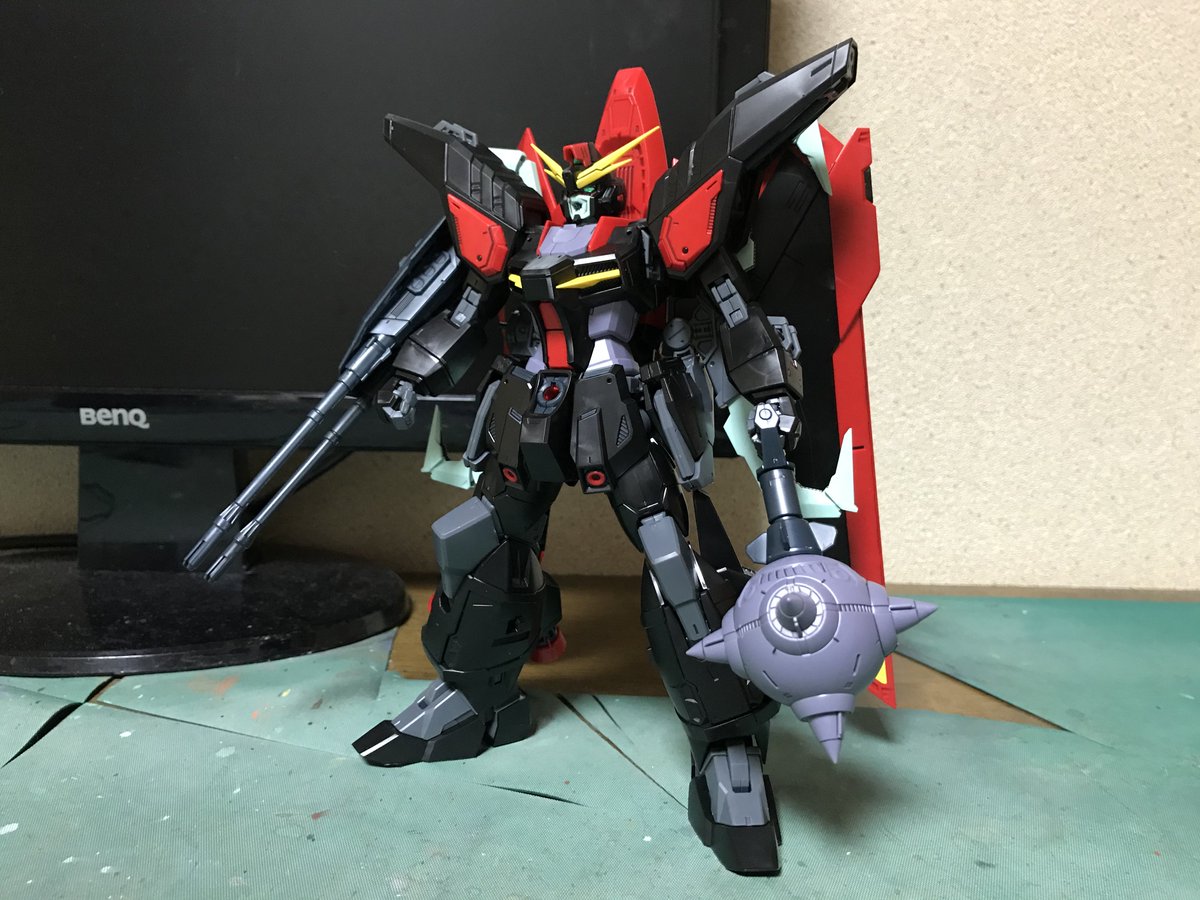 :FM #レイダーガンダム の組み立ては完了。まだ終わりではない。鬼神トールの武器のミョルニルはエクセレント!どんな物でも粉砕にして処刑にしてやる!とりあえず塗ったミョルニルを乾燥させないと…一旦他のをやるか?乾燥が終えたらMシールだ。 #ガンプラ #ガンプラの画像を貼るとRTされると聞いて