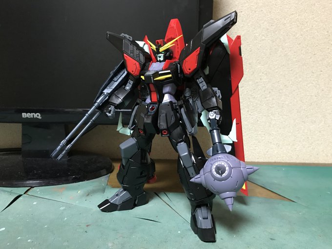 :こんばんは。今日も猛暑で外は暑かった…FM #レイダーガンダム の続きだ。SEEDのMSの武装や戦艦等の名の由来は神話系が多いな。例えばレイダーの鉄球はトールのミョルニルで、可変形態の鳥の足はアフロマズダだ。ブリリアントな夜を。 #ガンプラ #ガンプラの画像貼るとRTされると聞いて