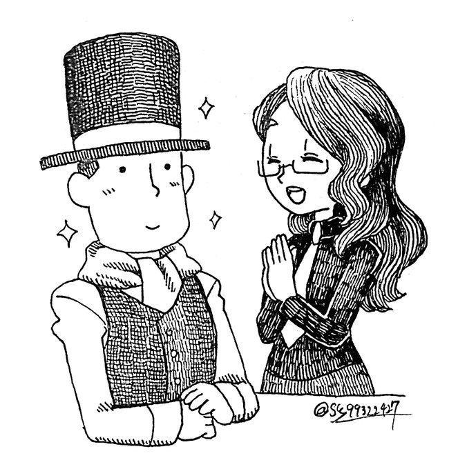 Layton's confused haha! (I don't know how to do backgrounds) #ProfessorLayton #LukeTriton #CliveDove #レイトン教授 #ルークトライトン #クラウスアルバトロ #fanart #pantyandstocking
