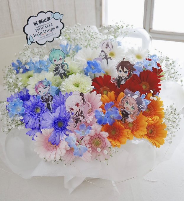 『SQUALL ~雨ニモマケズ/風ニモマケズ~』開催おめでとうございます🎊 Rain Drops様宛に、企画参加者6名で楽屋花を贈らせて頂きました💐2daysライブ楽しみにしてます! #レイドロSQUALL