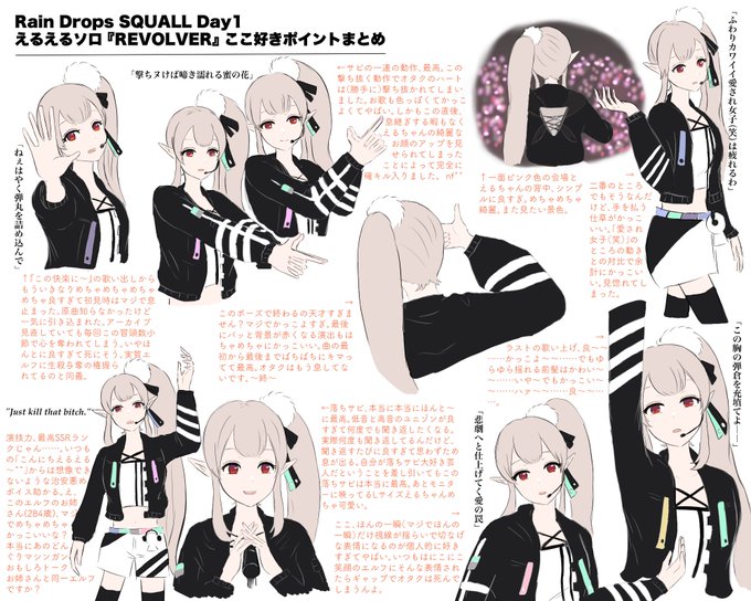 えるえるソロ『REVOLVER』 初見時は語彙を失いただ静かに涙を流すだけのオタクになっていたのですが、ようやく語彙が戻ってきたので個人的ここ好きポイントをまとめました。 ほぼ怪文書なので薄目で見てください。 #えるの絵だよ #レイドロSQUALL_Day1