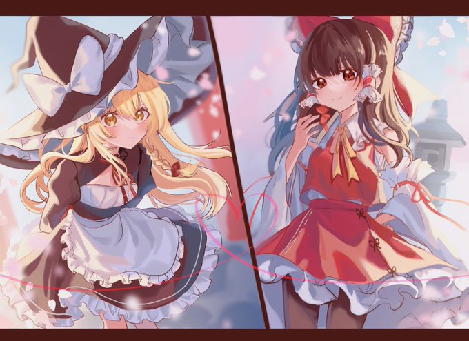 漫画描いててイラストを 描けていないので、最近のお気に入りをまとめました🫰🥰 よろしくお願いします🙇♀🙇♀ #ゴールデンウィークはフォロワーさんが増えるらしい #東方project #イラスト #レイマリ #霧雨魔理沙