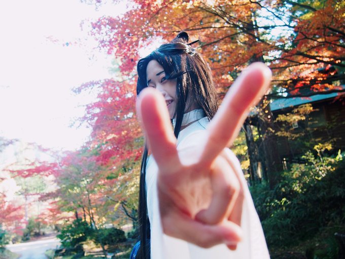 #レイヤーさんはコスプレの時のオフショットを晒して下さい 大体遊びながら撮影するのでめっちゃあるよオフショほぼ私の変顔🤪 魔道祖師のスイパラ軒離撮影の時珍しく可愛いオフショあった🤣 祐希さん可愛い🤣ちっちゃいバイクで嫁を迎えにくる旦那🤣