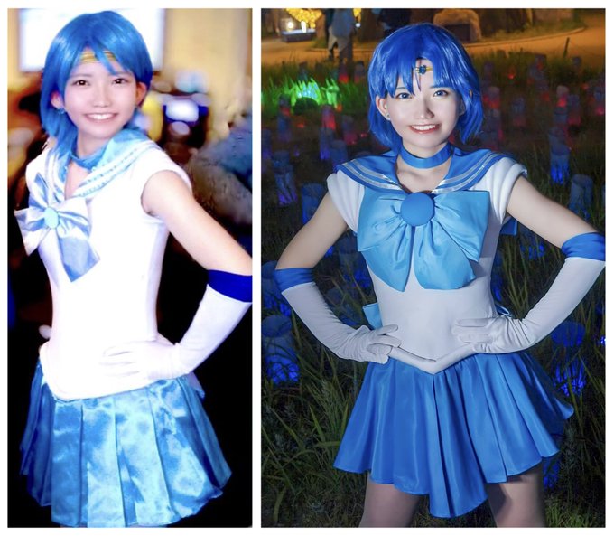 #レイヤーの初コスと現在を晒す コスデビューのちびムーンと今年6月のセーラームーン🌙 両方ともマチアソビで。 ←10歳 16歳→ 2枚目📷は裏火さん@urahi1228 #マチアソビ #こみるコス