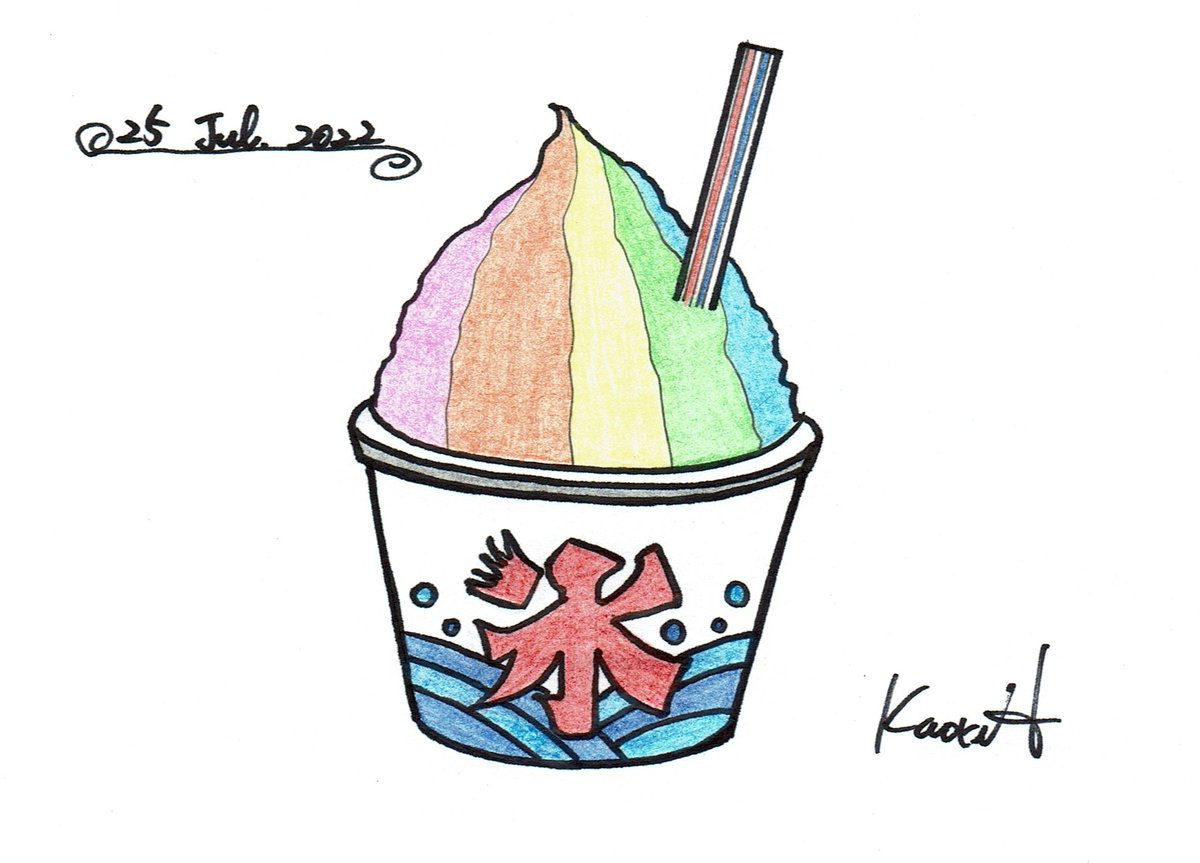 7月25日は #かき氷の日 です 725→ナツゴオリ→かき氷 #イラスト #オリジナルイラスト #イラスト好きさんと繋がりたい #絵描きさんと繋がりたい #一日一絵 #レインボーカラー #かき氷 #猛暑日