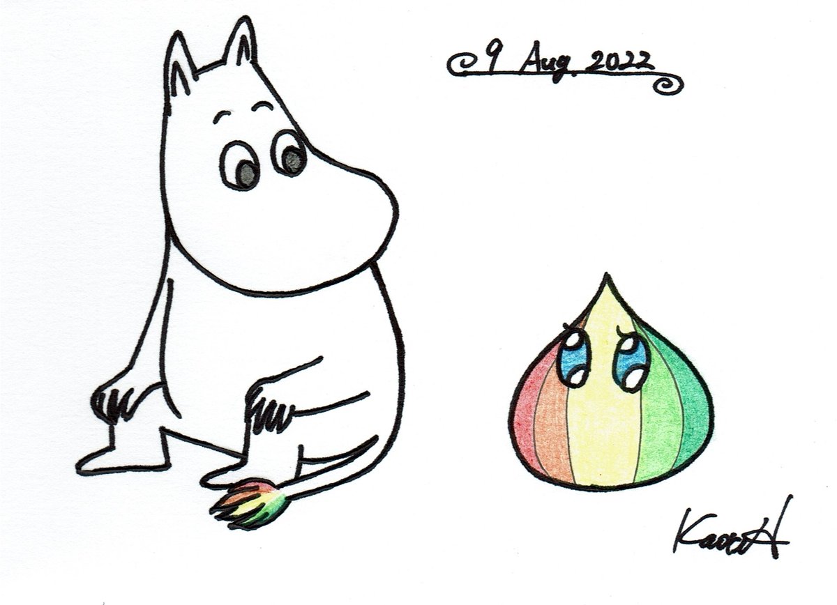 8月9日は #ムーミンの日 です🎉 あれ?ムーミントロールのしっぽが…?? #イラスト #一日一絵 #イラスト好きな人と繋がりたい #絵描きさんと繫がりたい #レインボーオニオン #ムーミン #ムーミントロール #レインボーカラー