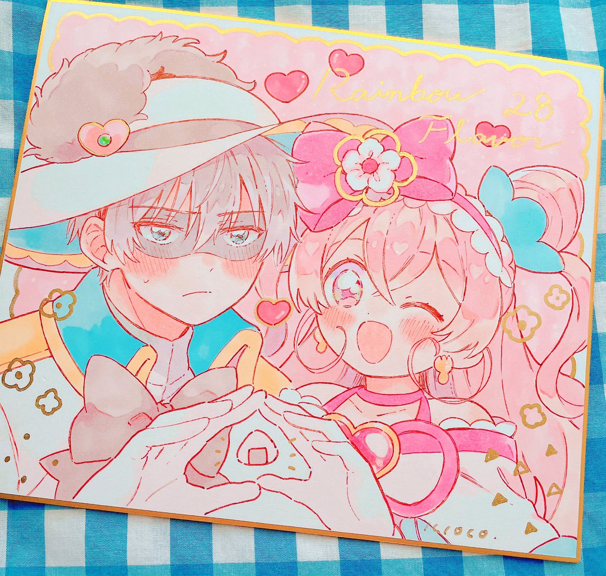 #レインボーフレーバー28 の色紙百景に出すやつ描きました! 手に取っていただけると嬉しいです😆 明日、会場でお会いしましょう♪ #神戸屋でアルバイトする菱川六花さんをくださいどなたか優しい方