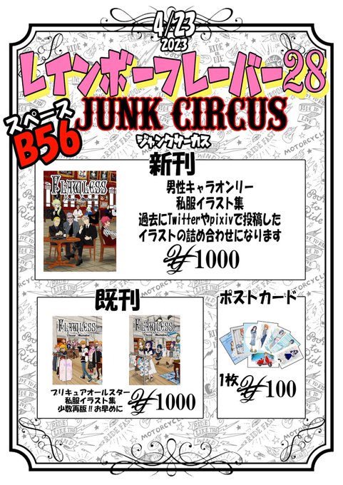 4/23(日)に大田区産業プラザpioで開催される #レインボーフレーバー28 のお品書きです! 今回はセロリーさん(@tirofinire ) と合同! D87,D88でソラまし新刊と共にお待ちしてます〜 #レイフレ28