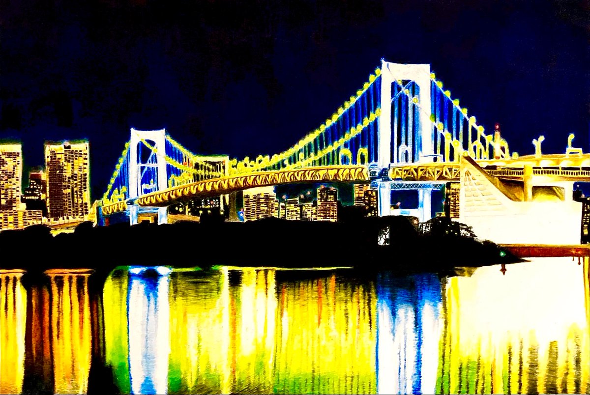 息子がインフルでダウン、、、残り少ない幼稚園、、何とか早く復帰させてあげたいところです。 そんな電柱 信号機 建設物大好きな 6歳息子の作品の一部 #イラスト #6歳児 #電柱 #信号機 #レインボーブリッジ #みんなで楽しむTwitter展覧会