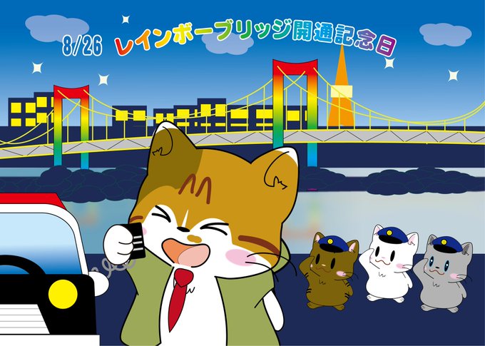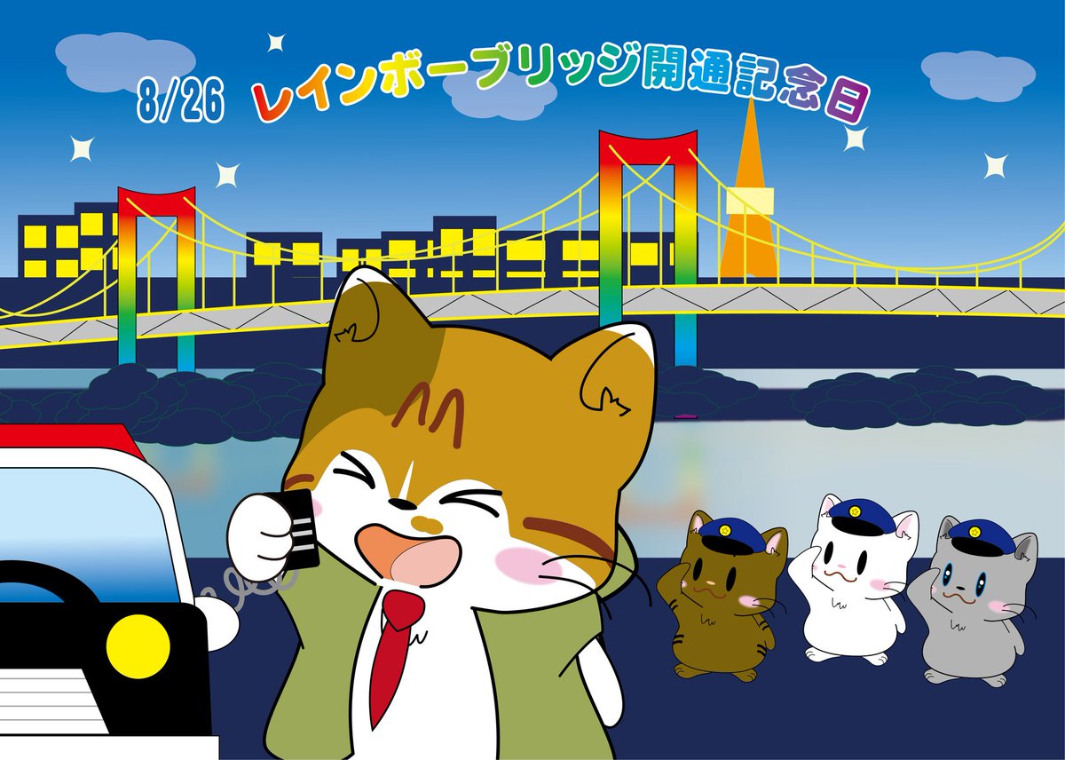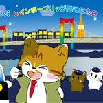 今日はレインボーブリッジ開通記念日。 以前、レインボーブリッジを徒歩で渡りました。 疲れたけど、いい眺めです! ✿LINEスタンプ販売中! 見にきてもらえるとうれしいです❤︎ store.line.me/stickershop/pr… #レインボーブリッジ開通記念日 #今日は何の日 #イラスト #LINEスタンプ