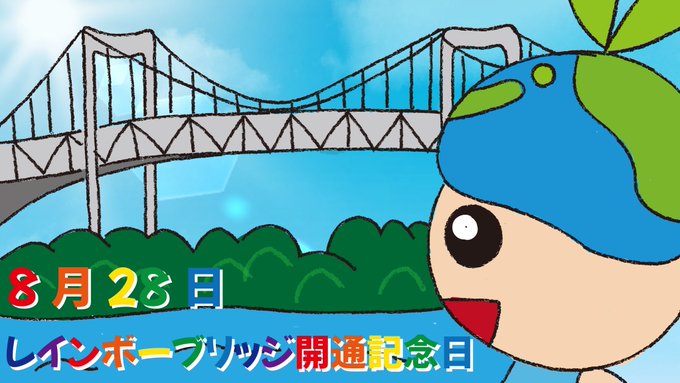 おはよー!今の大阪市東淀川区の天気は晴れ☀️ そして今日は「#レインボーブリッジ開通記念日」🌈 僕、実際にまだみたことないんだ🙃 いつかみてみたいな〜✨ #アースリード #アースくん #不動産 #今日は何の日 #イラスト #ゆるキャラ #企業公式が毎朝地元の天気を言い合う