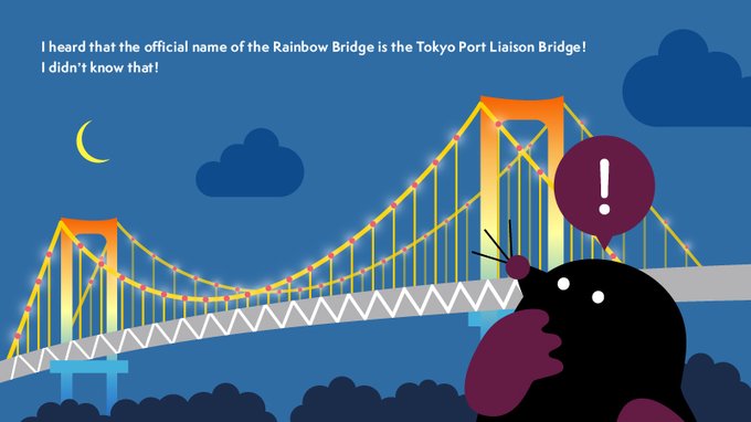 モグモグ〜!レインボーブリッジの正式名称は東京港連絡橋なんだって!知らなかった!! #レインボーブリッジ開通記念日 #モグハル #Moguharu #もぐら #キャラクター #character #イラスト好きな人と繋がりたい #イラスト #illustration #デザイン #mascots