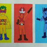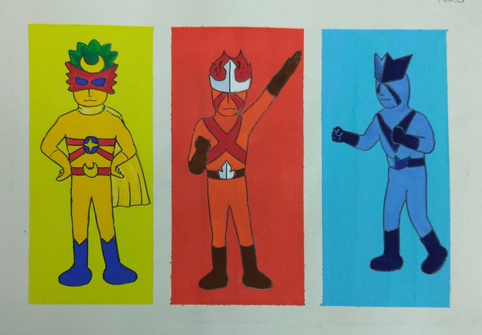 昭和にTVでやってたレインボーマンを描いてみました。 月の化身、火の化身、水の化身 #イラスト #イラスト好きな人と繋がりたい #絵描きさんと繋がたい #アトリエの系譜S #レインボーマン #アクリル