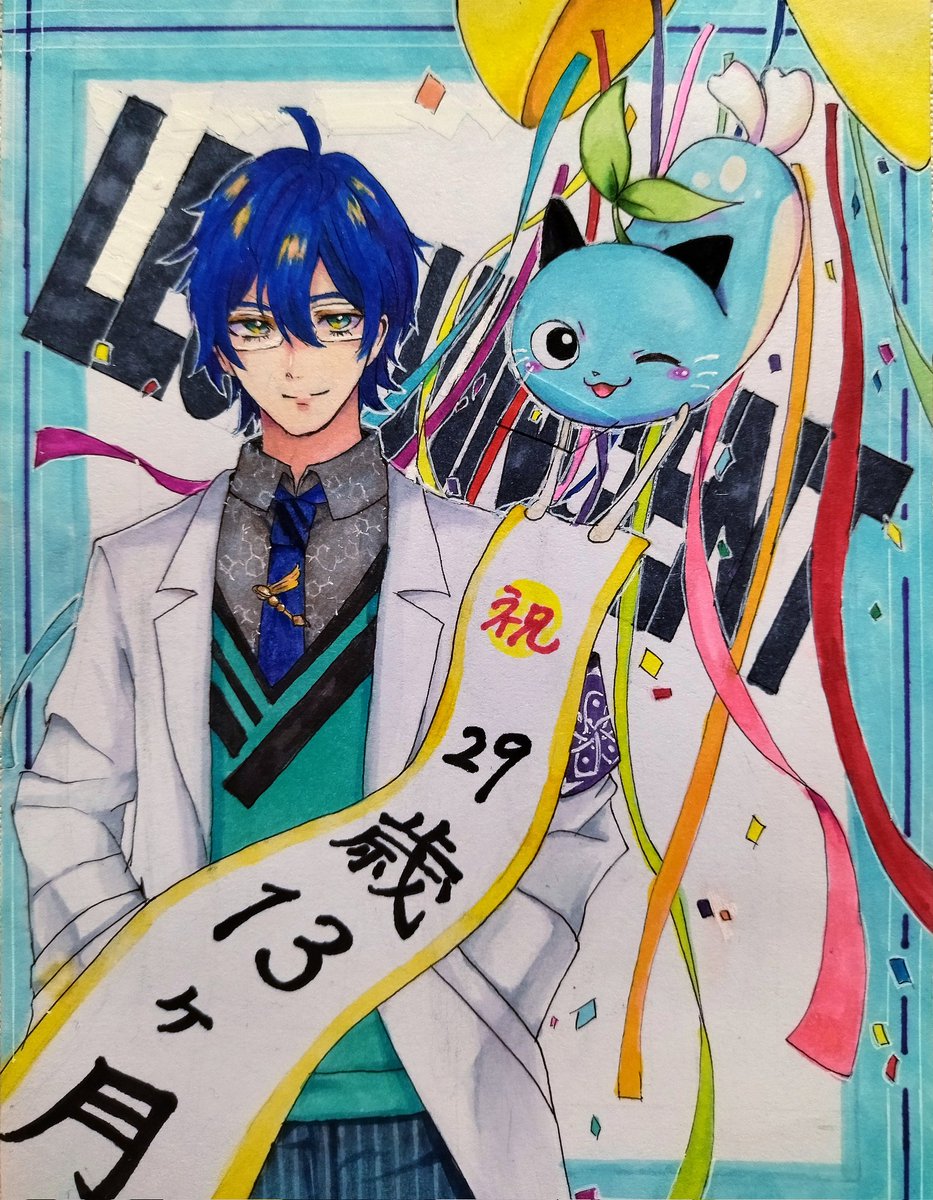 (こちら再投稿になります。) 大変遅れてしまいましたが、ハッピーバースデー! いつも楽しい配信本当にありがとう。1000年後も配信見るゾ👊 レオス・ヴィンセントに幸あれ〜!! #まめねことレオス #レオス・ヴィンセント誕生日29歳13ヶ月
