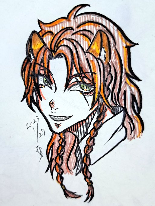 レオナおじたん再アップ🦁 一番大事な目の傷描くの忘れてた🥲 #ツイステ #twst #twstファンアート #レオナキングスカラー #イラスト #冬の創作クラスタフォロー祭 #絵柄が好きって人にフォローされたい #artwork #illustraion