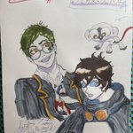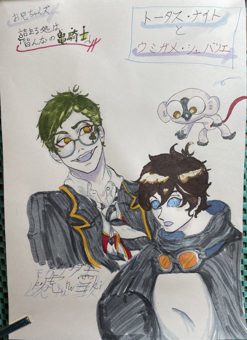 『僕らの“亀騎士”』 “カメ”で“騎士”って言うと脳内でこう変換される。普段、髪にハイライト入れないから難しい🤔 ※またも軽率なクロスオーバーです。ご注意下さいませ。 #ツイステファンアート #トレイ・クローバー #レオナルド・ウォッチ
