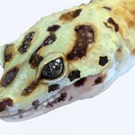 レオパードゲッコー。 (以前オーダーいただき制作) 極小ビーズを編み込みレオパの皮膚のツプツプを表現。目は天然石。 #編み物 #crochet #レオパードゲッコー #leopardgecko #ヒョウモントカゲモドキ #eublepharismacularius