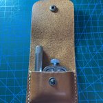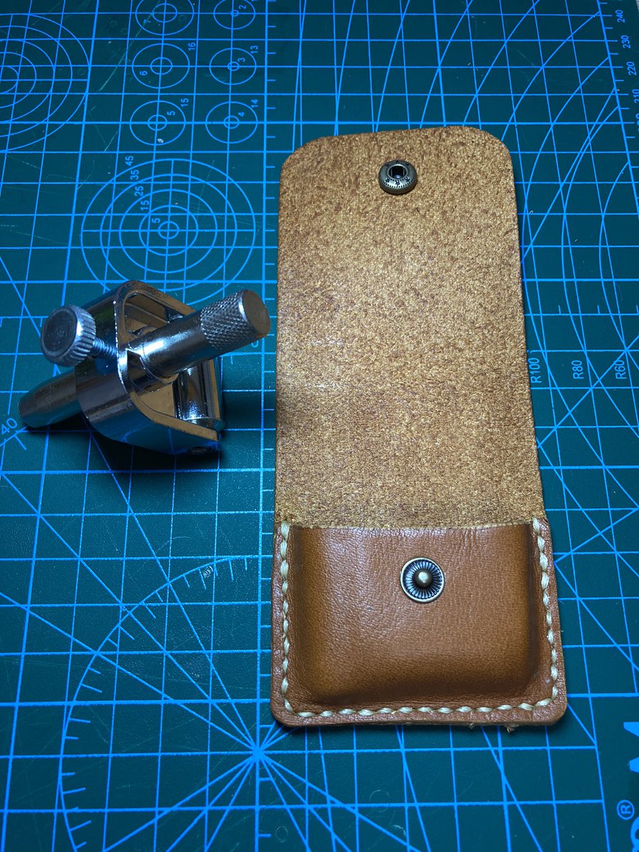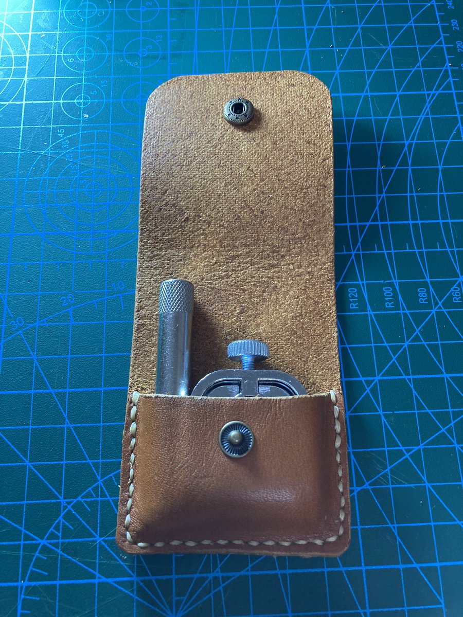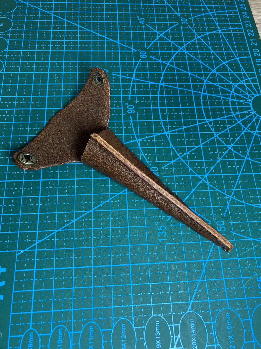 こんにちは☀️ #レザークラフト練習中 革のはぎれで 角度調整器ケースを作りました‼️ このケースいる?との声が聞こえてきそうですが…😅笑 ハンドメイドは楽しいですね💕 今日も楽しい一日を🎵 #みんなで楽しむTwitter展覧会 #ハンドメイド #角度調整器 #レザークラフト