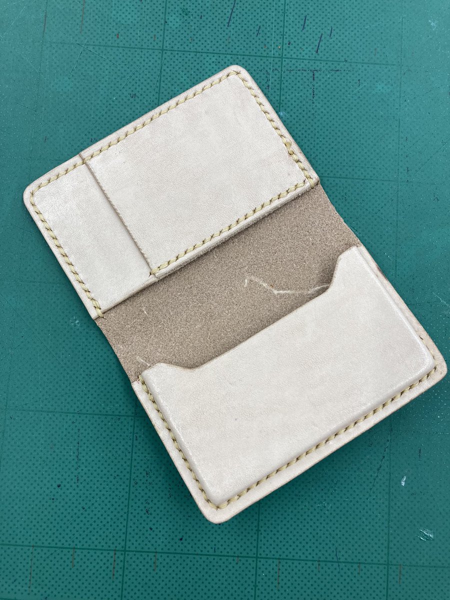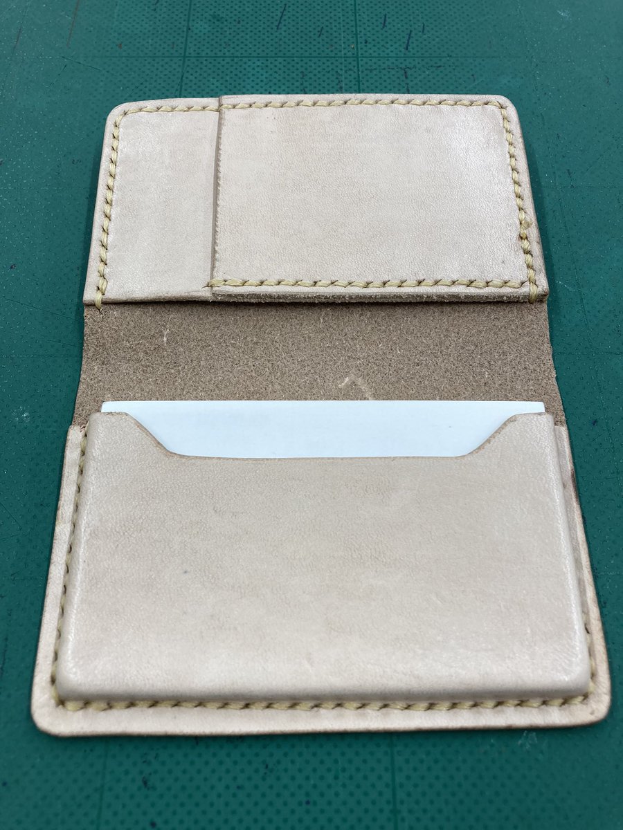 おはようございます😊 #レザークラフト ヌメ革のはぎれで名刺入れを作ってみました! 名刺を入れる所はバッチリだったんですが。。。😅 ちゃんと測って作らないと失敗しますね💦💦 今日もよろしくお願いします💕 #みんなで楽しむTwitter展覧会 #ハンドメイド #名刺入れ twitter.com/s_watanabe2020…