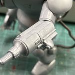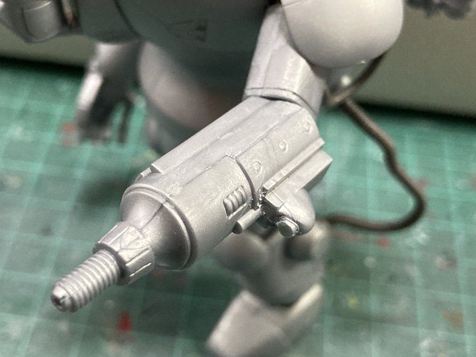 武装ラクーンのレーザーガンのカメラをコリコリして丸くしました。突き出てる様にするなら2ミリプラ棒かな。今回はこのままにしようと思うけど、今日買って来よう。 #模型 #プラモデル #マシーネンクリーガー #ラクーン #レッドフォックス #maschinenkrieger #kowyokoyama #横山宏 #sf3d #safs