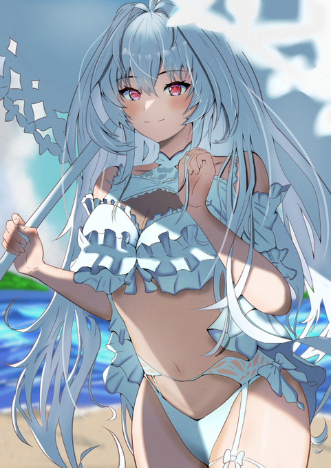 #FGO #レディアヴァロン #水着 #夏の創作クラスタフォロー祭り #イラスト好きな人と繋がりたい #いいねした人全員フォローする さてさてさぁて、今年の水着イベに備えねばε-(´∀`; )