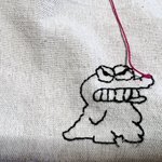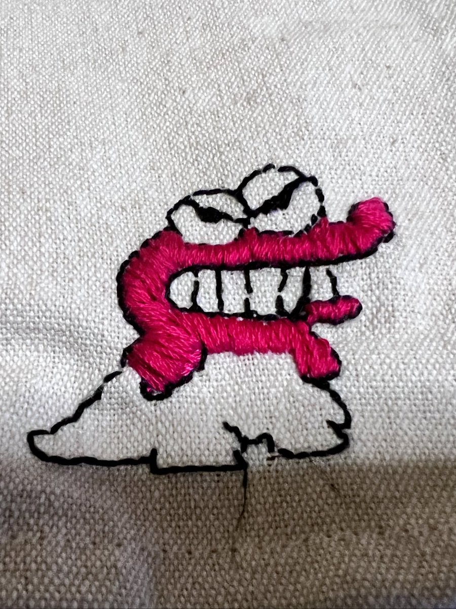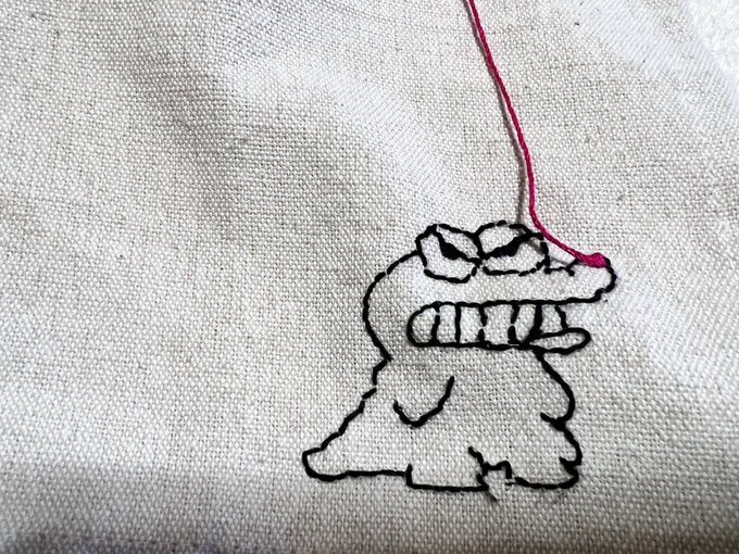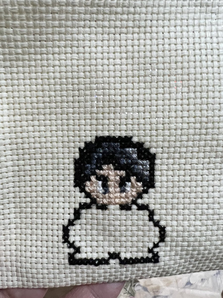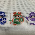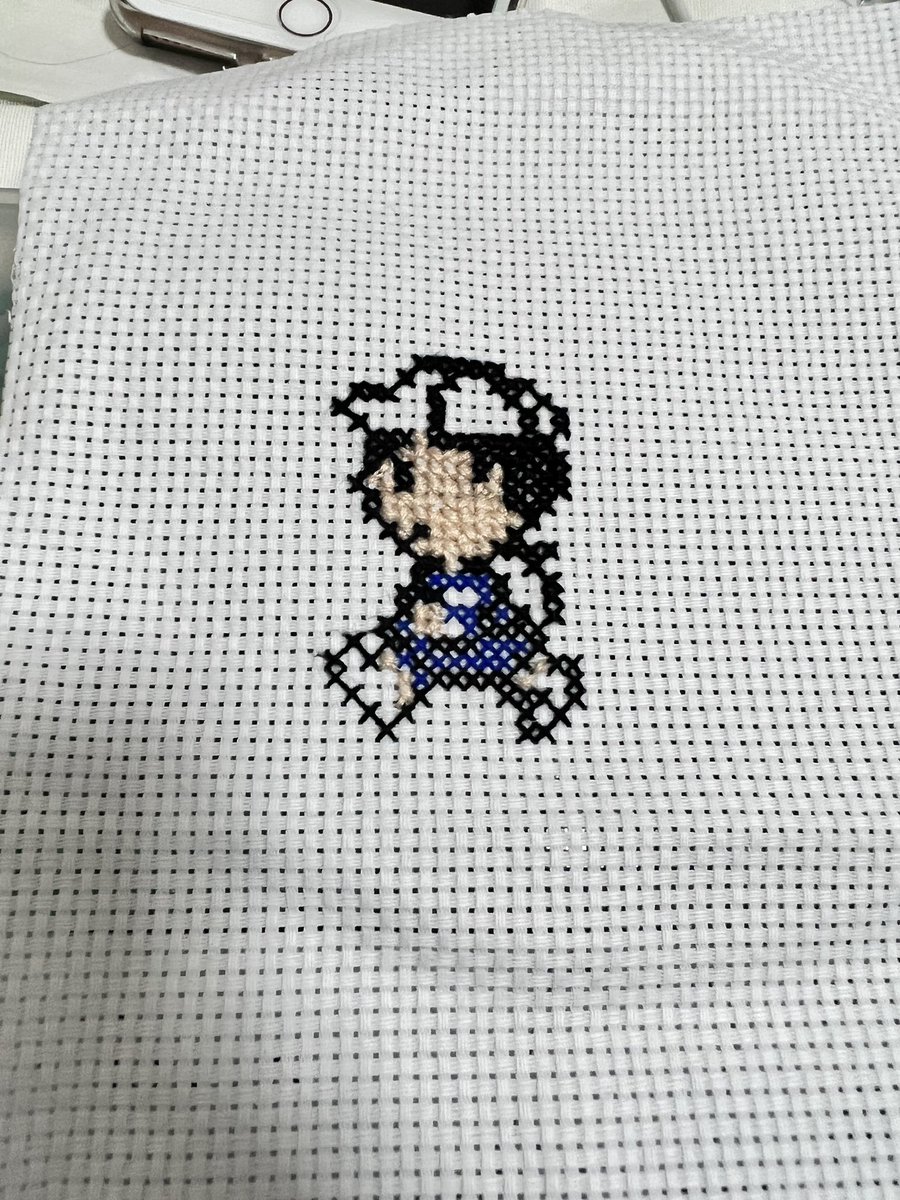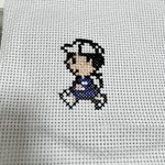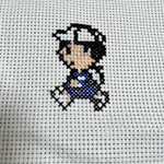 ドット絵から アイロンビーズ クロスステッチ と、いろいろやって 原点の刺繍に😆 チョコビキャラクターやってみたよ😍 なかなかうまく行きました😊 初作品😍チョコビ #チョコビ #クレヨンしんちゃん #刺繍 #ドット絵 #クロスステッチ #アイロンビーズ #レトロゲーム野郎作品