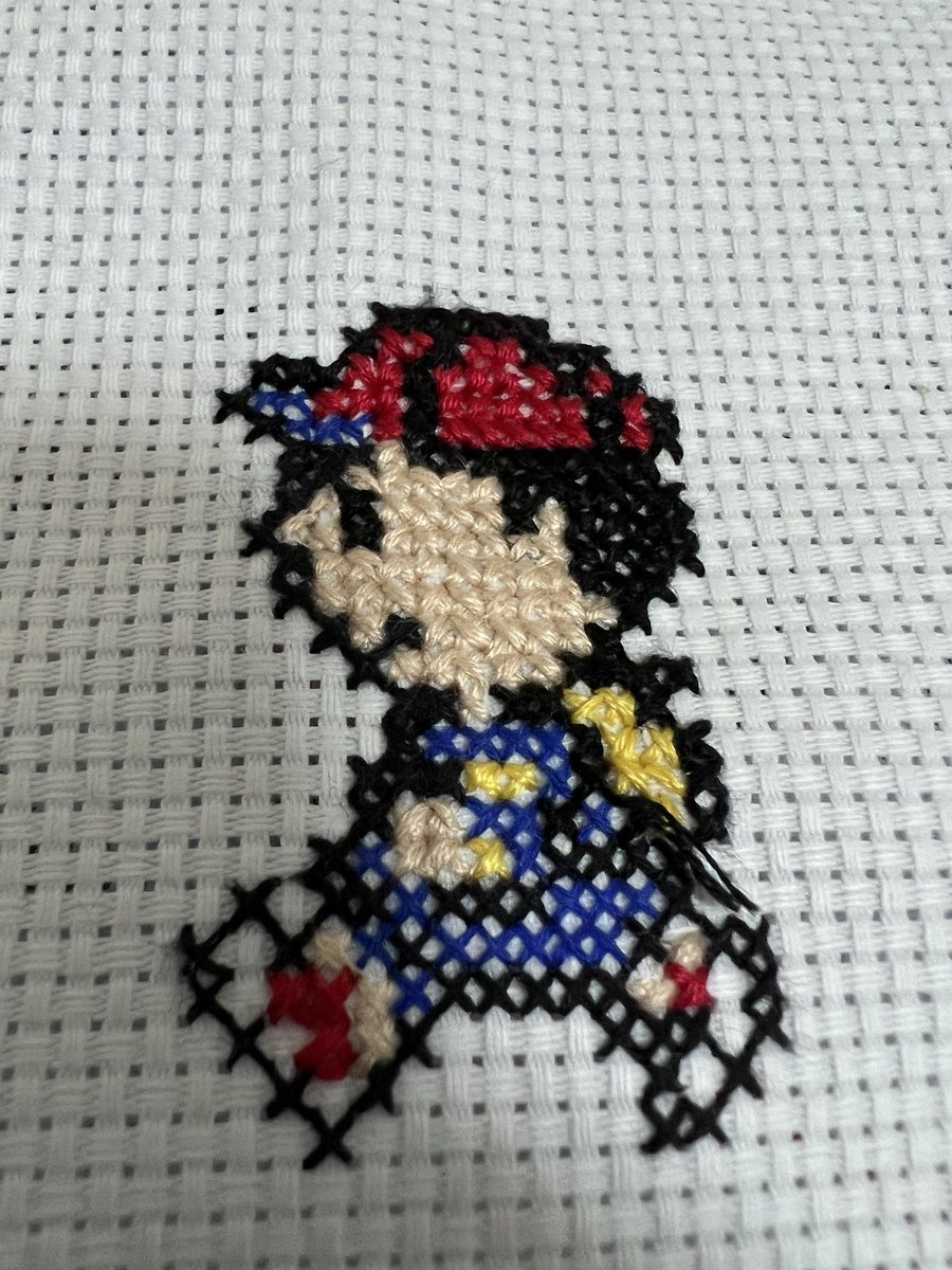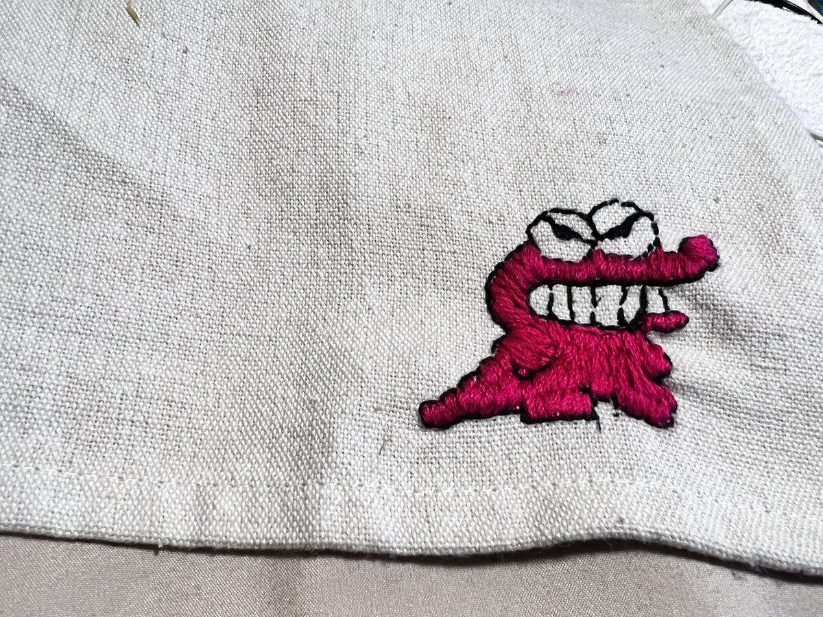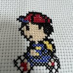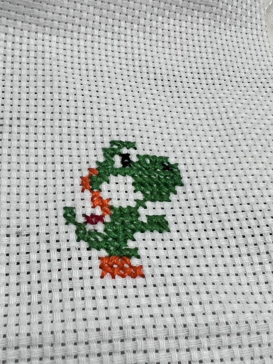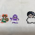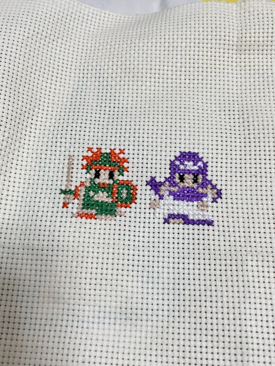 ドット絵から アイロンビーズ クロスステッチ と、いろいろやって 原点の刺繍に😆 チョコビキャラクターやってみたよ😍 なかなかうまく行きました😊 初作品😍チョコビ #チョコビ #クレヨンしんちゃん #刺繍 #ドット絵 #クロスステッチ #アイロンビーズ #レトロゲーム野郎作品
