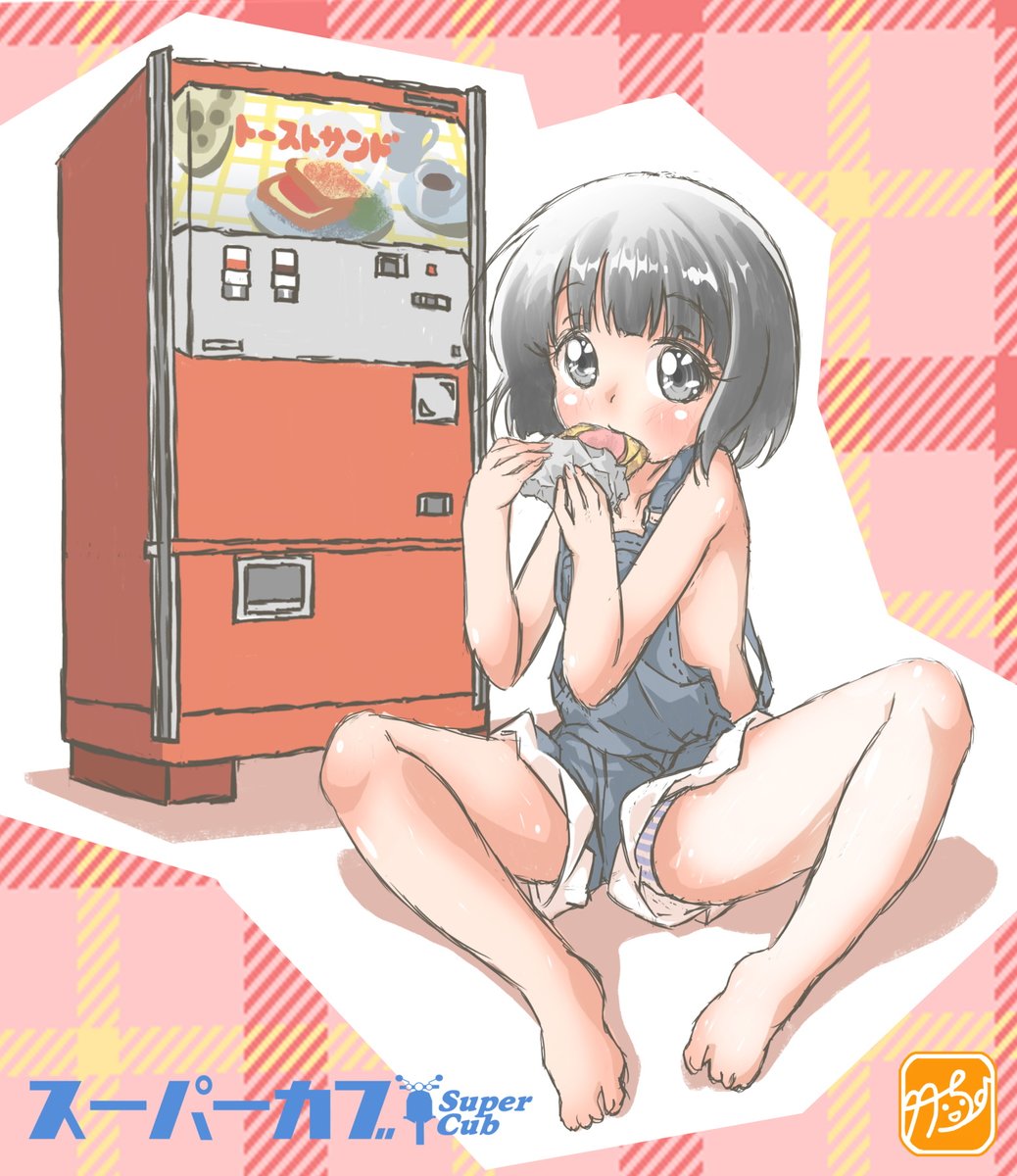 レトロ自販機のトーストサンドを 美味しく食べる小熊ちゃん🐻を、 描きました~💞(⋈◍>◡<◍)。✧♡ #スーパーカブ #レトロ自販機 #トーストサンド #絵描きさんと繋がりたい #私の絵柄が好みって人にフォローされたい