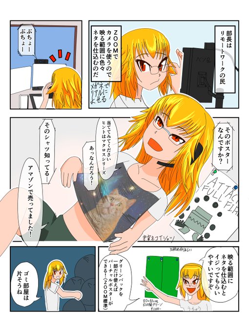 Zoomに使っているネタ仕込みの話 今回使ったネタ グリーンバック amazon.co.jp/gp/product/B0B… 宇宙猫Tシャツ amazon.co.jp/gp/product/B08… おすすめのネタがあったら仕込むので教えて!! #デイリーテックダイアリー #レポート漫画 #漫画が読めるハッシュタグ