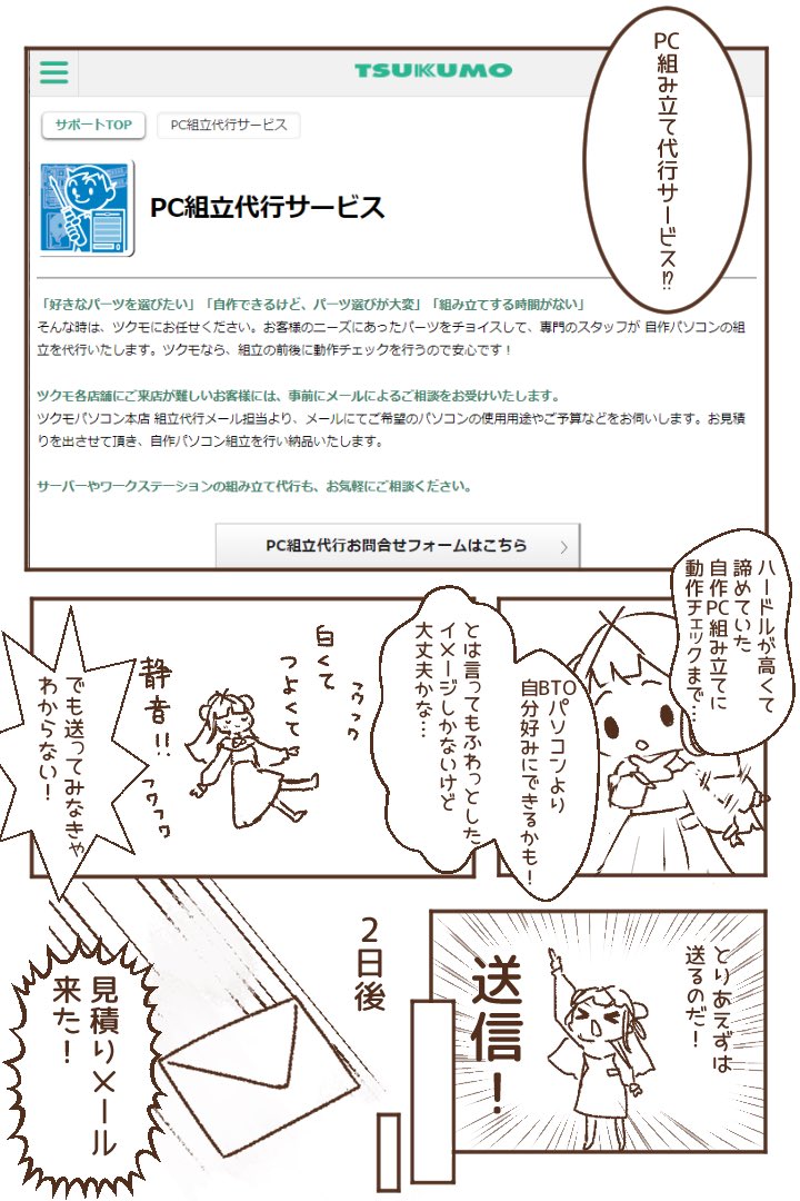 【ツクモパソコンさんでPC組立代行サービスを利用してみた‼️】 この度、ツクモパソコン様にて、新しいPCの組立代行をお願いしました。 とっても良かったのでレポ漫画を描きました‼️オススメです…‼️ (レポ漫画は公開の許可を頂いています) #レポ漫画 組立代行のページ⇒ support.tsukumo.co.jp/contents/pc_as…