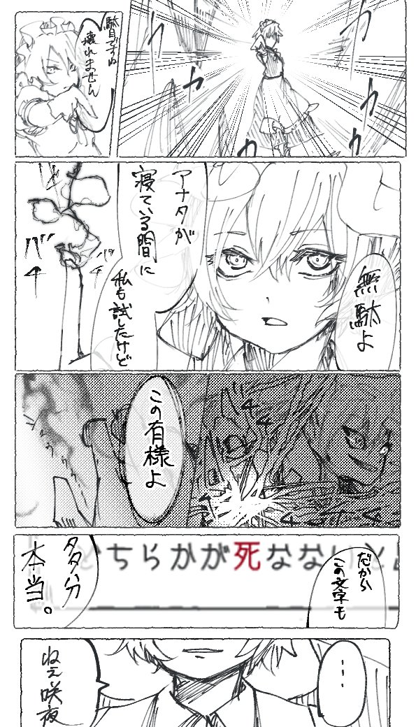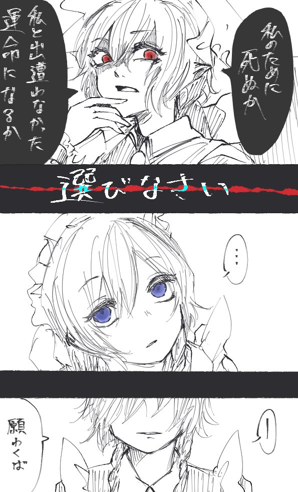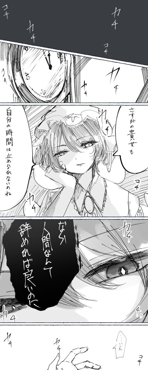"Remaining time between me and you" 投稿順アンケラストです #死ネタ 注意 #100日チャレンジ 99日目 #漫画がよめるハッシュタグ #絵柄が好みって人にフォローされたい #レミリア・スカーレット #十六夜咲夜 #レミ咲 #東方Project