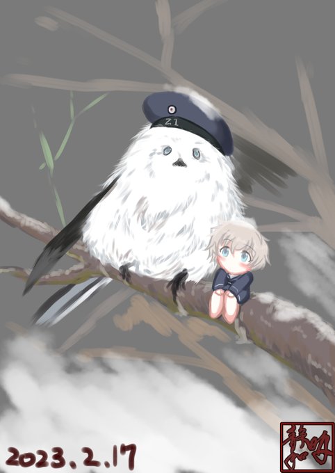 雪の妖精とも呼ばれるシマエナガ。 この季節になるととあるドイツ艦と仲つつましく 過ごしてる姿が見られると言われております。 この光景を見られた人はとても幸運とも言われてるとかなんとか #艦これ版深夜の真剣お絵描き60分一本勝負 #艦これ版真剣お絵描き60分一本勝負_20230217 #レーベ