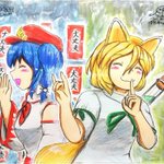 ❄️「これ霊夢のふりふりみたいだな」 ⭐️「霊夢…?ああ…あのときの巫女ね…」 #チルノ #博麗霊夢 #深夜の真剣お絵描き60分一本勝負 (東方版・1503回目参加・お題フリー) #レーベルのあの子 #レベ子 #東方版もうひとつの深夜の真剣お絵描き60分一本勝負 (もうひとつ版・558回目参加) (※8月25日お題)