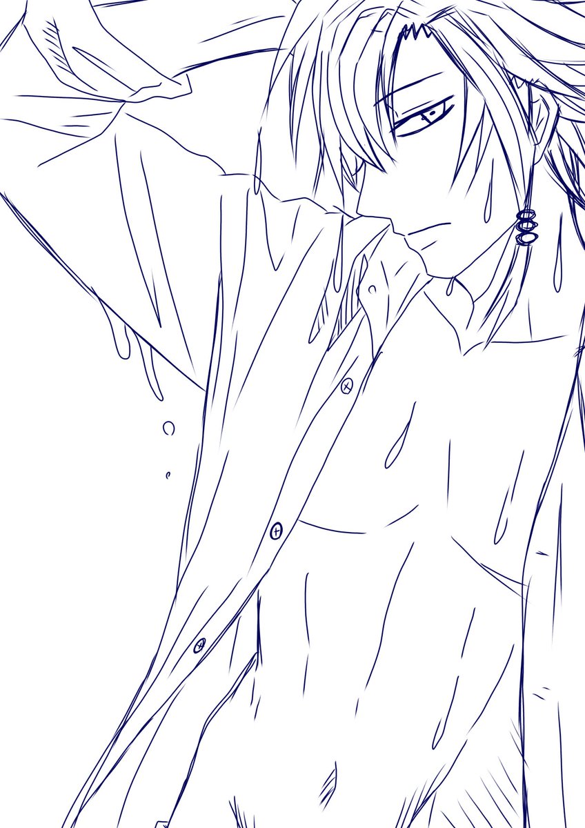 @Tales_Law →しゃけさん❤️リクエスト14段。ほぼ裸のロウ制服を自分流にアレンジ。勝手に塗らしました笑昨日は落ち込みツイードすみません。まだ落ち込み中。イラスト大丈夫かな?#テイルズ #テイルズオブアライズ #ロウ #テイルズ好きさんと繋がりたい #イラスト好きな人と繋がりたい #イラスト