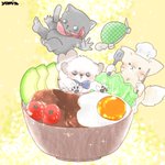 【ぷくりいぬ】7/11 #ロコモコ開きの日 おはようございます☀ ✨🦊🥣今日はロコモコの日。美味しくできたら、仕上げにぷくりを添えます 🐶🐱🐢💕💕美味しそう〜! 🦊ぷくりに食べ尽くされる前に、召し上がれ! #ゆるいイラスト #絵描きさんと繋がりたい