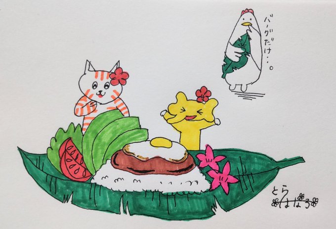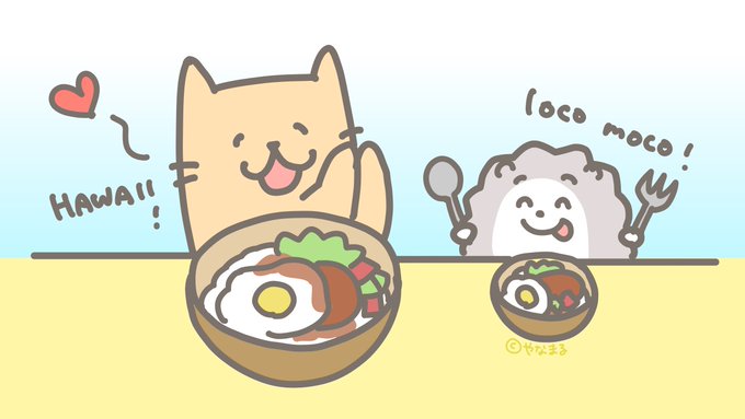 おはようございます😊 今日はロコモコ開きの日🍚 夏(7)いい(11)日に ロコモコを食べてほしいという願いから ハワイ州観光局が制定したんだって✨ 今日も一日よろしくお願いします🙌 #イラスト #ロコモコ開きの日 #絵描きさんと繋がりたい